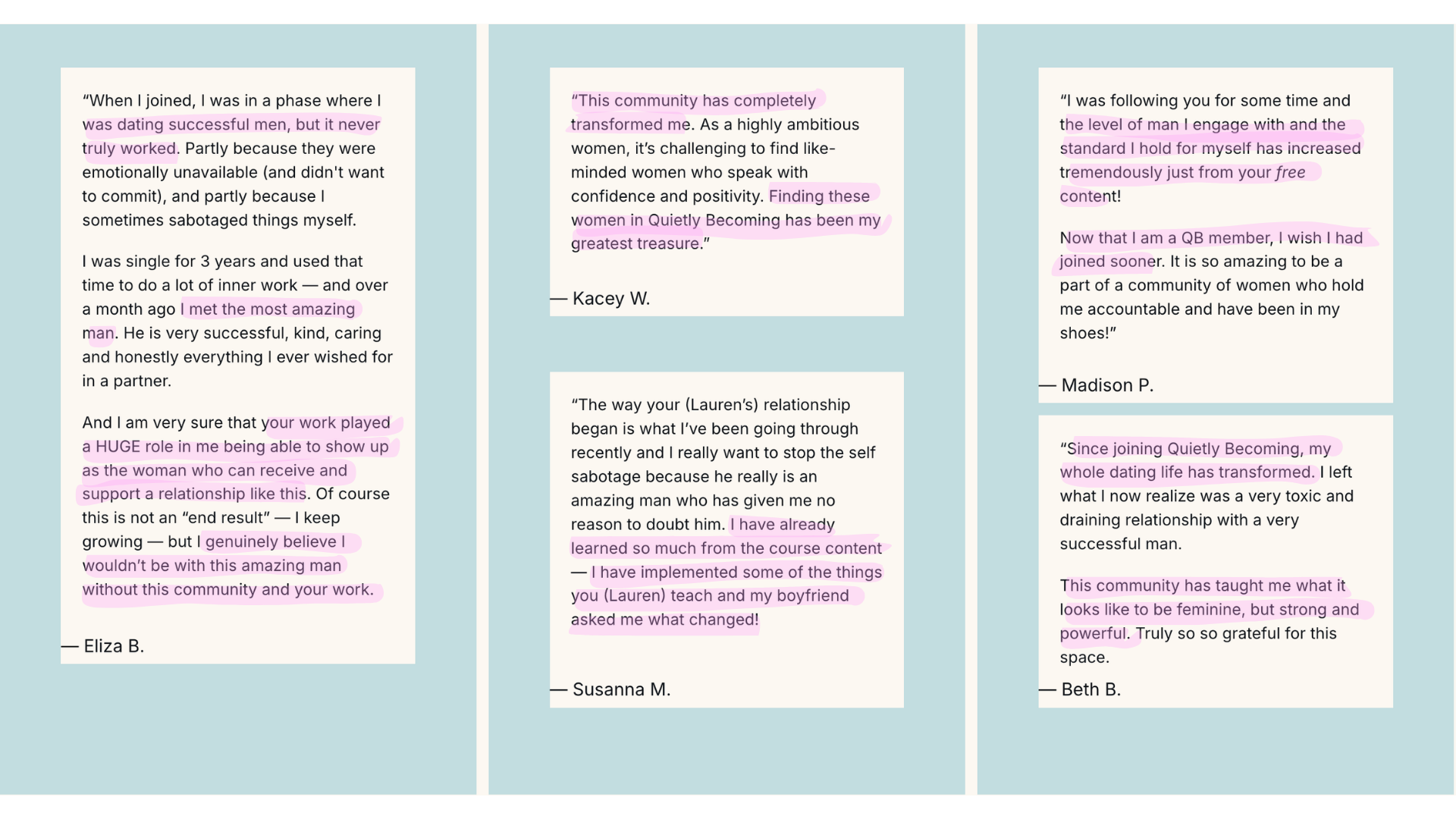 What Quietly Becoming Members are saying…